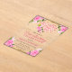 Invitations En Acrylique Aquarelle rose Coeurs d'or Fleurs 21e anniversaire