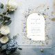 Cette élégante suite de mariage présente des motifs floraux et feuillages délicats dans un décor bleu et or poussiéreux pour un thème mariage cohésif et époustouflant. L'incroyable invitation acrylique présentée ici présente une bordure florale douce et une forme voûtée tendance, ajoutant une touche de romantisme et de sophistication à l'ensemble. Parfait pour les couples à la recherche d'un design intemporel et magnifique pour leur journée spéciale. Ajoutez les détails de l'événement requis à l'aide du modèle fourni. Recherchez ID1045 pour voir d'autres produits dans cet ensemble de conceptions mariages.