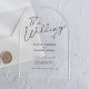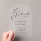 Simple minimaliste romantique script de calligraphie lettré à la main élégant acrylique transparent transparent (ou opaque gelé) faire-part de mariage de forme arc.