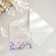D'élégants aquarelles créent une bordure florale au bas de cette invitation d'anniversaire acrylique en forme d'arc. Les fleurs mauves pastel, bleu rose et blanc sont la fleur du mois d'anniversaire de septembre, ce qui en fait le thème parfait pour votre anniversaire de septembre.