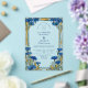 Un design mariage d'inspiration Art Nouveau raffiné avec de superbes fleurs de maïs bleues encadrées de détails botaniques dorés. L'élégance vintage associée à des touches florales audacieuses crée un look intemporel mais artistique, parfait pour les couples à la recherche d'un style mariage sophistiqué et romantique.