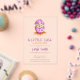 Belle et mignonne invitation en acrylique baby shower rose avec l'illustration d'un petit oiseau sur le point d'éclosion. Illustré et dessiné par Patricia Alvarez.
