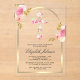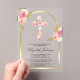 Éblouissez vos invités avec cet élégant invitation baptisé qui présente de belles fleurs roses et une élégante croix florale. Ajoutez simplement les détails de votre événement sur ce modèle facile à utiliser pour en faire une invitation unique.
