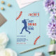 Step up to the plate with this red white and blue baseball / softball bachelor party invitation with pinstripes. Personalize it with your event details. Great for sports fans.