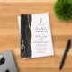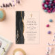 Le bord gauche de cette élégante invitation à la première communion moderne comporte une bordure d'agate d'aquarelle noire bordée d'une fausse parties scintillant d'or. Une croix de fausse feuille d'or apparaît au-dessus du texte personnalisable, qui combine écriture manuscrite, copperplate et polices italiques en gris fusain sur un arrière - plan clair. Idéal pour la première communion d'un garçon.