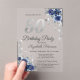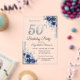 Invitations En Acrylique Bleu Fleurs Parties scintillant argent gouttes 50e