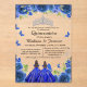 Invitations En Acrylique Bleu Royal Floral Papillon jumeau Quinceanera
