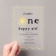 Un magnifique dessin d'invitation d'anniversaire de Boho Sunshine dessiné à la main. Une mignonne "One happy girl" rétro sur le thème de l'invitation de fête de premier anniversaire. Un beau thème d'invitation d'anniversaire Boho été qui peut être customisé à vos détails.
