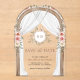 Éblouissez vos invités avec ce mariage élégant Save the Date avec de belles fleurs rustiques et typographie moderne. Ajoutez simplement les détails de votre événement sur ce modèle facile à utiliser pour en faire une carte unique de sauvegarde de la date.