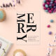 • Bold stacked “MERRY” typography design