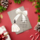 This sophisticated design features a large ivory bow adorned with delicate pearl details, paired with a graceful gown illustration. The transparent acrylic finish creates a modern, refined look that feels both luxurious and unforgettable.