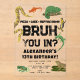 A teen boys "Bruh" reptile show petting zoo themed birthday invitation using cool typography. A custom kids black and white "pizza, cake and reptile show" teenage boys birthday invitation design perfect for any teens birthday party theme. Customize this "Bruh" birthday invitation with your own text and make it your own!