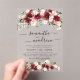 Elevate your wedding with this stunning clear acrylic invitation featuring lush watercolor burgundy roses, soft blush peonies, creamy blooms, and delicate greenery in a romantic floral design. Perfect for 2026 modern, moody jewel tone, garden, or luxurious celebrations.