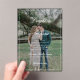 Présentant nos invitations de mariage sophistiquées, avec un arrière - plan acrylique clair avec une couche de calligraphie gracieuse. Ces invitations combinent une élégance intemporelle avec une toile de fond moderne, vous permettant de présenter une photo fiançailles préférée magnifiquement. La calligraphie formelle apporte une touche de raffinement, ce qui en fait un choix idéal pour les couples à la recherche d'une invitation classique mais contemporaine. Customisez-les avec vos détails mariages pour une première impression inoubliable !