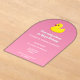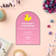 Faites un petit plongeon avec cette adorable invitation d'anniversaire de canard en caoutchouc jaune, parfait pour les petits amateurs d'eau ! Avec son design acrylique en forme d'arc et un arrière - plan en dégradé rose onirique, il apporte une ambiance amusante et girly à votre planification de fête. Customisez-le facilement avec vos détails de fête et préparez-vous pour un plaisir d'anniversaire impeccable !
