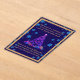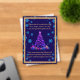Notre carte en acrylique d'arbre de Noël violet montre un arbre de Noël aux feuilles violets brillants avec de nombreux cadeaux de couleur néon sous l'arbre.