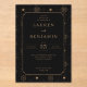 Invite your guests on a journey among the stars with our “Celestial Romance” collection: an elegant and dreamy stationery suite inspired by the night sky, moonlight, and the cosmic magic of your love story. This collection features a celestial romantic style with a cohesive black and gold color palette, evoking sophistication and timeless charm. The designs incorporate intricate star patterns and minimalist typography to create a luxurious yet understated look. Recurring motifs include ornate borders and monograms, tying together various product types such as invitations, napkins, wine labels, address labels, and more. These versatile pieces are perfect for wedding events, ensuring a harmonious and memorable aesthetic throughout.