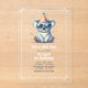 Fêtez le grand jalon de votre petit bébé avec cette invitation d’anniversaire en acrylique claire "He’s a Wild One"! Doté d'un adorable koala de fête dans les tons et d'un casquette festif, ce design moderne et transparent ajoute une touche luxueuse à un 1er anniversaire au thème de la jungle sauvage. Parfait pour les amoureux des animaux et les fêtes de safari élégantes !