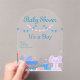 Célébrez l'arrivée imminente de votre petit bout avec notre carte d'invitation claire en acrylique pour Baby Shower Garçon. Cette invitation élégante et moderne présente un design épuré qui met magnifiquement en valeur les détails de votre événement, ce qui en fait un choix parfait pour une baby shower stylée. Fabriquée en acrylique de haute qualité, elle offre une durabilité et une touche unique qui impressionnera vos invités. Avec sa finition transparente, cette invitation ajoute une touche de sophistication à votre célébration, garantissant que votre journée spéciale soit inoubliable dès la première impression.
