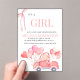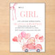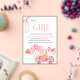 Cette charmante invitation au baby shower célèbre l'arrivée d'une petite fille au design chaleureux et fantaisiste. L'expression "IT'S A GIRL" occupe le devant de la scène dans une police de corail élégante et douce, associée à une illustration décorative en ruban pour une touche de sophistication. Ci-dessous, les détails personnalisés de l'événement sont soigneusement arrangés dans une police gracieuse pour une lisibilité facile. Le fond présente une adorable illustration d'une voiture rouge vintage portant un paquet de ballons roses en forme de coeur, évoquant la joie et la fête. L'ensemble allie chaleur, élégance et ludique, ce qui en fait un lieu idéal pour une célébration spéciale.