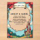 Cette élégante invitation mariage acrylique de style conte de fées est parfaite pour un mariage moderne. Le design rétro présente une forêt enchantée vintage, une illustration de château et une calligraphie noire sur un arrière - plan sur le thème du livre de contes.