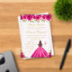 Cette invitation élégante et glamour à l'anniversaire de sweet sixteen présente une belle princesse aux cheveux brunes et à la peau claire dans une robe de boule rose chaud. Le texte combine écriture manuscrite et polices sans serif modernes pour un look élégant et sophistiqué. Les compositions florales, les papillons et les confettis d'or créent un mélange parfait de rustique et de chic. Graphiques par www.etsy.com/uk/shop/SunflowerDayLove