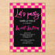 Checker rose chaud pêche noir Lets party Sweet 16 Acrylique Invitations. Personnaliser Sweet sixteen Faisons la fête girly invitation Anniversaire avec design rose vif, noir et blanc. à damiers carré pêche et rose motif rétro géométrique. motif de mosaïque de carré géométrique de vérificateur rétro Vintage cool.