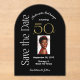 Cette arche acrylique enregistrer la date est minimaliste chic. L'élégant script blanc et la luxueuse calligraphie or contre un arrière - plan noir sont tout à fait appropriés pour une fête marquant du 50e anniversaire. Il est facile de personnaliser avec un nom, une date, un emplacement et une photo pour montrer la femme de l'heure. Il complète parfaitement la carte d'anniversaire glamour et classique 50 et Fabulous à suivre.