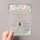 Cette invitation acrylique chic Quinceañera présente une fille coing vêtue d'une jolie robe verte sage, belle robe rose bébé, vert sauge floral et feuillage vert doux. Personnalisez-le avec vos détails facilement et rapidement, appuyez simplement sur le bouton Modifier à l'aide de l'outil de conception pour réorganiser et formater le style et le placement du texte. Aussi idéal pour Sweet 16 et d'autres occasions! c) Le Happy Cat Studio