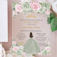 Invitations En Acrylique Chic Sage Green Baby rose Floral or Quinceañera