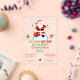 Santa is ready for this bowling party with this fun invitation. This original design features Santa with a red marble design bowling ball with snowflakes and bowling pins. Great invitation for friends, businesses and families.