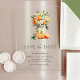 Éblouissez vos invités avec cet élégant enregistrer la date avec de belles oranges et la typographie moderne. Ajoutez simplement les détails de votre événement sur ce modèle facile à utiliser pour en faire une carte unique de sauvegarde de la date.