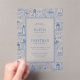 This elegant timeless coastal wedding acrylic invitation features a seaside toile de jouy pattern of hand drawn lighthouses, sailboats, and ocean waves, reminiscent of summer on the New England coast.