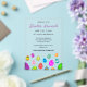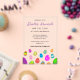 Colorful Easter eggs on a beautiful invitation to an Easter brunch and egg hunt.