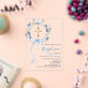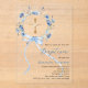 Un fond clair et transparent, orné de fleurs bleues aquarellées en couronne, un nœud bleu et une croix dorée. Personnalisez et ajoutez un nom et des détails.