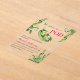 Celebrate your little babies' arriving with this greenery inspired acrylic invitation, perfect for the modern, stylish twins baby shower! Featuring a watercolor kawaii peas with pink bows and the playful slogan "Two Peas in a Pod" this design captures the essence of youthful fun and elegance. Customize the details to make it uniquely yours and create a memorable announcement that family and friends will adore.