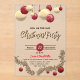 Décorations de Noël en rouge et or avec neige pour une belle invitation à la fête de Noël.