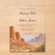 This design features a breathtaking beauty of the American Southwest showcasing fine art watercolour desert scene with majestic red rock mountains, soft neutral tones, and a clean white sky. This invitation can be easily edited with your wedding details.