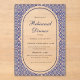 Donnez le ton pour une célébration vibrante et élégante avec ce dîner de répétition espagnol Talavera bleu mexicain! Inspirée par la beauté intemporelle de la poterie traditionnelle Talavera, cette invitation présente des motifs bleus et blancs complexes, apportant une touche de charme d'antan et d'ambiance culturelle à vos festivités mariages.