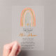 Cette invitation en acrylic transparent pour baby shower bohème arc-en-ciel et étoile peut être personnalisée avec vos informations dans une typographie élégante. Conçue par Thisisnotme©