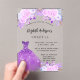 Une invitation moderne, élégante et glamour pour une fête Sweet 16, 16e anniversaire. Un arrière - plan clair et transparent avec des fleurs roses rousses, une robe violette. Le nom est écrit avec un script de style moderne écrit à la main. Personnalisez et ajoutez les détails de votre fête.