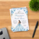 Célébrez son jour magique avec cette élégante invitation de quinceañera bleu poussiéreux et argenté. Avec des fleurs délicates à l'aquarelle, une gracieuse princesse dans une robe fluide et un diadème scintillant, ce design capture le charme d'une célébration royale. Les tons bleus doux et les accents floraux la rendent parfaite pour un quince intemporel, hivernal ou inspiré d'un conte de fées.