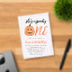 Des invitations à des fêtes d'anniversaire sur le thème de l'Halloween mignonnes avec l'expression "Il/Elle est Éffrayant" dans un script manuscrit amusant, associé à une illustration jack-o-lanterne d'aquarelle. Le design a un arrière - plan acrylique transparent, ajoutant une touche de charme à votre célébration éffrayante. Personnalisez ces invitations amusantes de 1er anniversaire avec le nom de votre enfant et les détails de la fête ci-dessous, parfait pour une fête festive et unique sur le thème de l'Halloween!