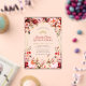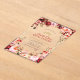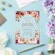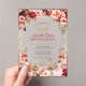 Cette invitation présente un arrière - plan d'inspiration rustique, d'inspiration boisée, agrémenté de fleurs à l'aquarelle éclatantes, dans les tons rouge, rose et crème, agrémentées de verdure et d'ornements dorés. Une jeune femme dans une élégante robe écarlate est le point central, entourée de papillons lunaires et de subtils détails étincelants, créant un design sophistiqué et festif.