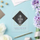 A modern minimalist graduation announcement / party invitation photo card design featuring a minimalist arch tassel frame on a diamond shaped (mortarboard) photo acrylic card.