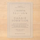 This elegant wedding invitation features a minimalist design with clean lines and ample white space, creating a sophisticated and modern look. The color palette is simple, utilizing black text on a crisp white background for maximum readability. Typography plays a key role, with a classic serif font used throughout to convey formality and grace. The layout is centered and balanced, emphasizing the names of the couple as the focal point while maintaining an uncluttered aesthetic. Perfect for couples seeking a timeless and understated invitation that exudes elegance and anticipation for their special day.
