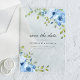 Modern blue watercolor flowers and greenery decorate this elegant floral save the date wedding acrylic invitation. Use the online template tools to change the font style, color and background to any of your choice.
