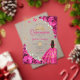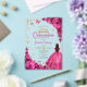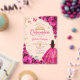 Fuchsia pink gold Quinceanera celebration acrylic invitation. Features brunette girl in ball gown dress, script font, gold butterflies, roses and tiara. Perfect for an elegant princess style glam celebration. Personalize with your own details. Stylish transparent or frosted acrylic invitations.
