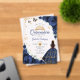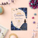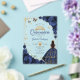 Navy gold Quinceanera celebration acrylic invitation. Features brunette girl in ball gown dress, script font, gold butterflies, roses and tiara. Perfect for an elegant princess style glam celebration. Personalize with your own details. Stylish transparent or frosted acrylic invitations.