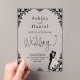 Cet élégant faire-part de mariage acrylique noir et blanc est parfait pour un mariage moderne. Le design simple présente une élégante calligraphie noire, un cadre noir chic et une illustration de mariée et de mariée sur un arrière - plan transparent et clair. La carte d'invitation comprend les détails du mariage au dos au lieu de payer une carte d'enceinte séparée.